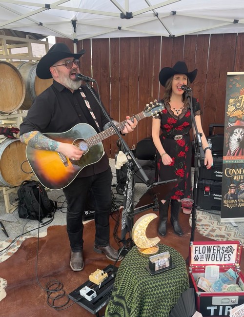 For Kelly and Meghan, Flowers for Wolves is about more than just playing music—it’s about sharing their story and passions, whether they’re crafting a melody, recommending a bottle, or simply enjoying life together with Isla by their side. Their performances are a reflection of this, offering an experience that resonates deeply, like the perfect pairing of good wine, great music, and meaningful connection.