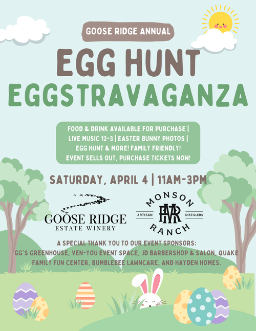 Hop on over to Goose Ridge Estate Winery for a fun-filled day of family-friendly activities at our Easter Egg Hunt!