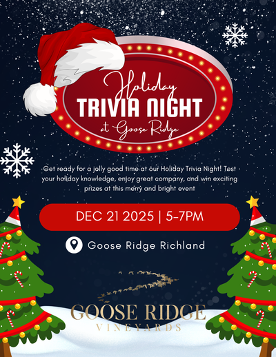 Sip on your favorite Goose Ridge wines, Drive Row Hard Ciders, or a seasonal cocktail from Monson Ranch Distillers as you take in the sights and sounds of the season. Capture the perfect holiday photo with Santa and soak in the cozy, cheerful ambiance of the winery. We look forward to spreading some holiday cheer with you.