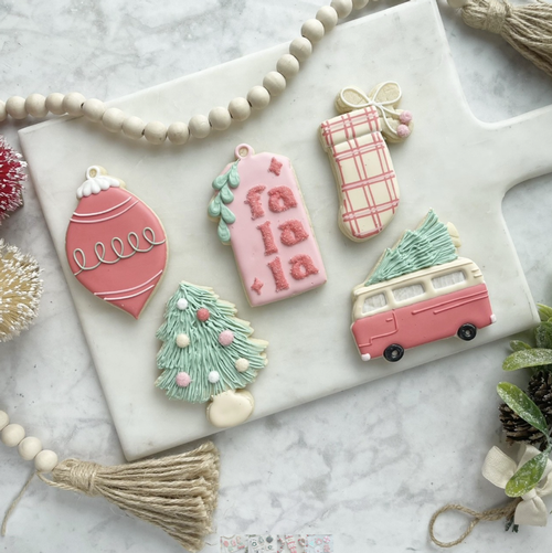 In this 2 hour class, you will learn piping basics, tips & tricks, and fun techniques. You will decorate the cookies shown and take home in a bakery box. Icing recipes included.